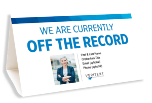 To use, just select and download the template of your choice, modify if applicable, print, fold in half, and use during a deposition to let all parties know when you are ON and OFF THE RECORD.