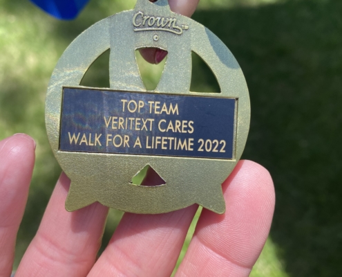 We’re thrilled to report that Veritext was awarded the ‘Top Team’ medal for leading the fundraising efforts (over $16,800 raised by Team Veritext!), and as such was given the honor of cutting the start ribbon to kick off the walk!