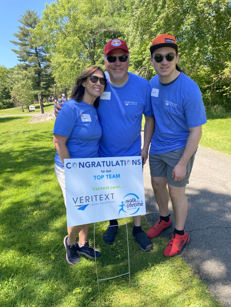 On June 5, 2022, Veritext team members from New York and New Jersey came together in Verona Park, NJ to walk 1.5 miles together to raise money for Spectrum360, a nonprofit organization dedicated to providing quality education, therapeutic and vocational programs to children and adults on the autism spectrum.