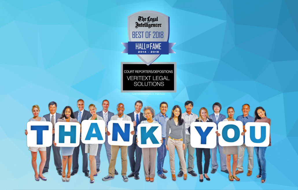Thanks for Voting Veritext Philadelphia’s Best Court Reporters for Four Years Running in The Legal Intelligencer