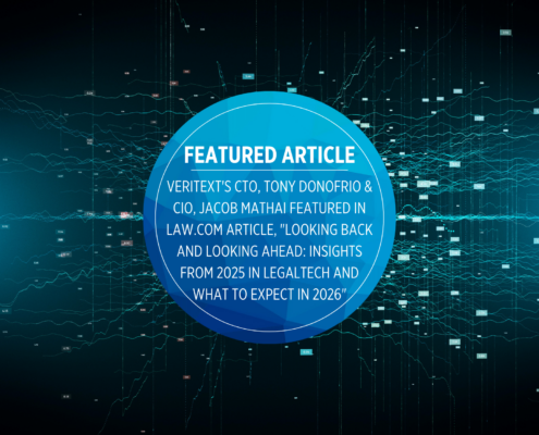 Olivia Payne2026-01-07 12:00:572026-01-07 12:00:57Veritext’s CTO, Tony Donofrio and CIO, Jacob Mathai Featured in Law.com Article, “Looking Back and Looking Ahead: Insights from 2025 In LegalTech and What to Expect In 2026”