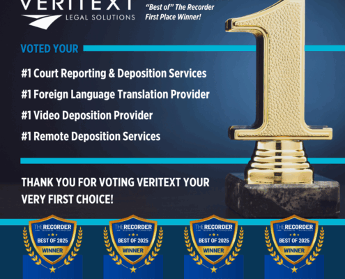 Olivia Payne2025-06-25 11:25:472025-06-25 11:25:47Veritext Legal Solutions Takes First Place Across Four Categories in the 2025 Best of The Recorder Annual Survey