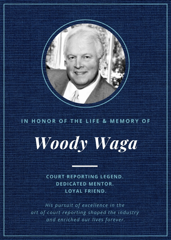 Woody’s soul was deep and wide. It was so evident how much he cared about his family, his friends, and his profession. In my 43 years in this business, I’ve learned that Woody Wagas are a rare breed, and the court reporting industry is all the better, richer and more colorful because Woody chose it for his own.
